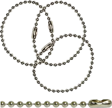 Lengths: 100mm, 150mm and 200mm Diameter: 3.20Chain Ball Diameter: #3 2.4mm (3/32")Average tensile strength 9kgMaterial: Brass (Nickel Plated)Colour: Bright Silver