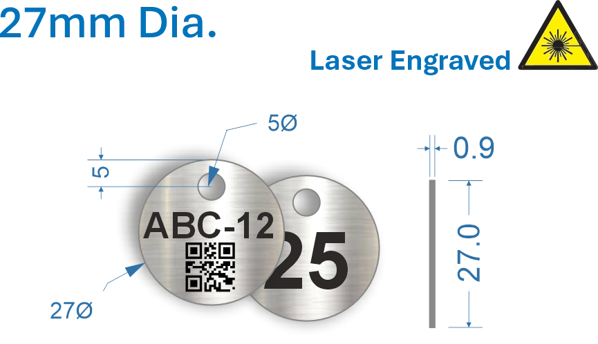 27mm dia. Laser Engraved Stainless Steel Valve Tags