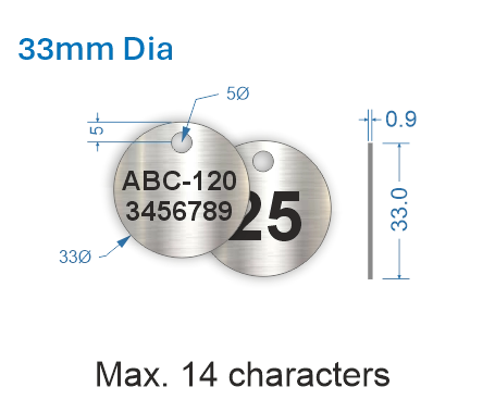 33mm dia. Customised Stainless Steel Valve Tags