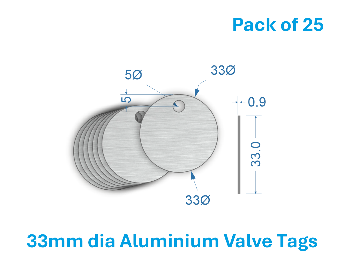 Durable and versatile blank valve tags, perfect for industrial identification needs. These tags are ideal for stamping with letters or numbers, allowing for custom labeling of valves, pipes, and equipment.