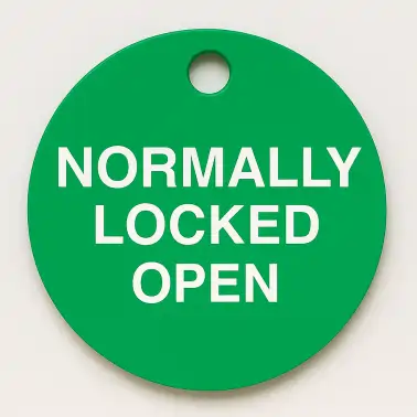 38mm Traffolyte plastic valve tags Normally Locked Open