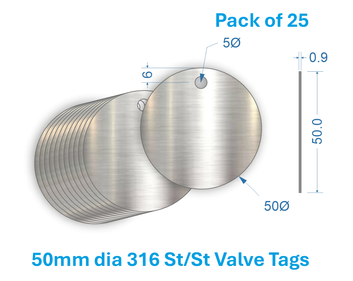 Durable and versatile blank valve tags, perfect for industrial identification needs. These tags are ideal for stamping with letters or numbers, allowing for custom labeling of valves, pipes, and equipment.