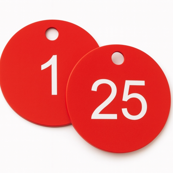 50mm Traffolite plastic valve tags packs of 25 Number sequenced