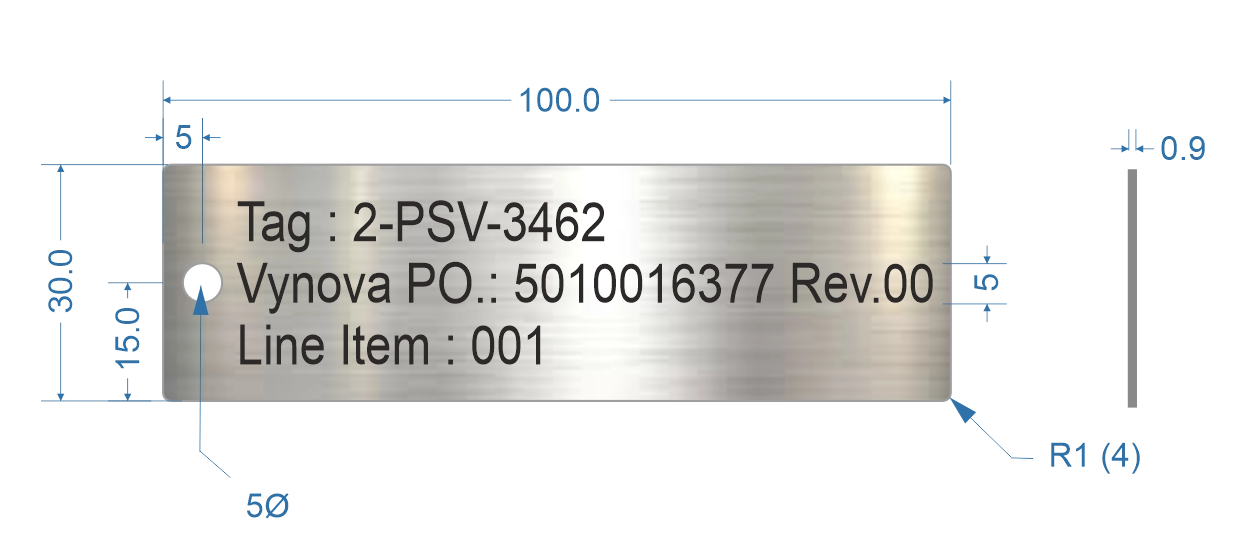 Dependant on character count (Approx 3.5mm with 11 Characters)