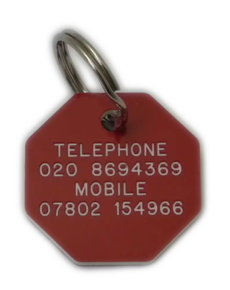 Engraved on both sides with your pet's details, name, address and telephone number or any other information you require.