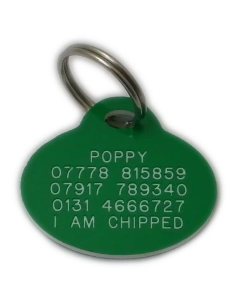 Engraved on both sides with your pet's details, name, address and telephone number or any other information you require.
