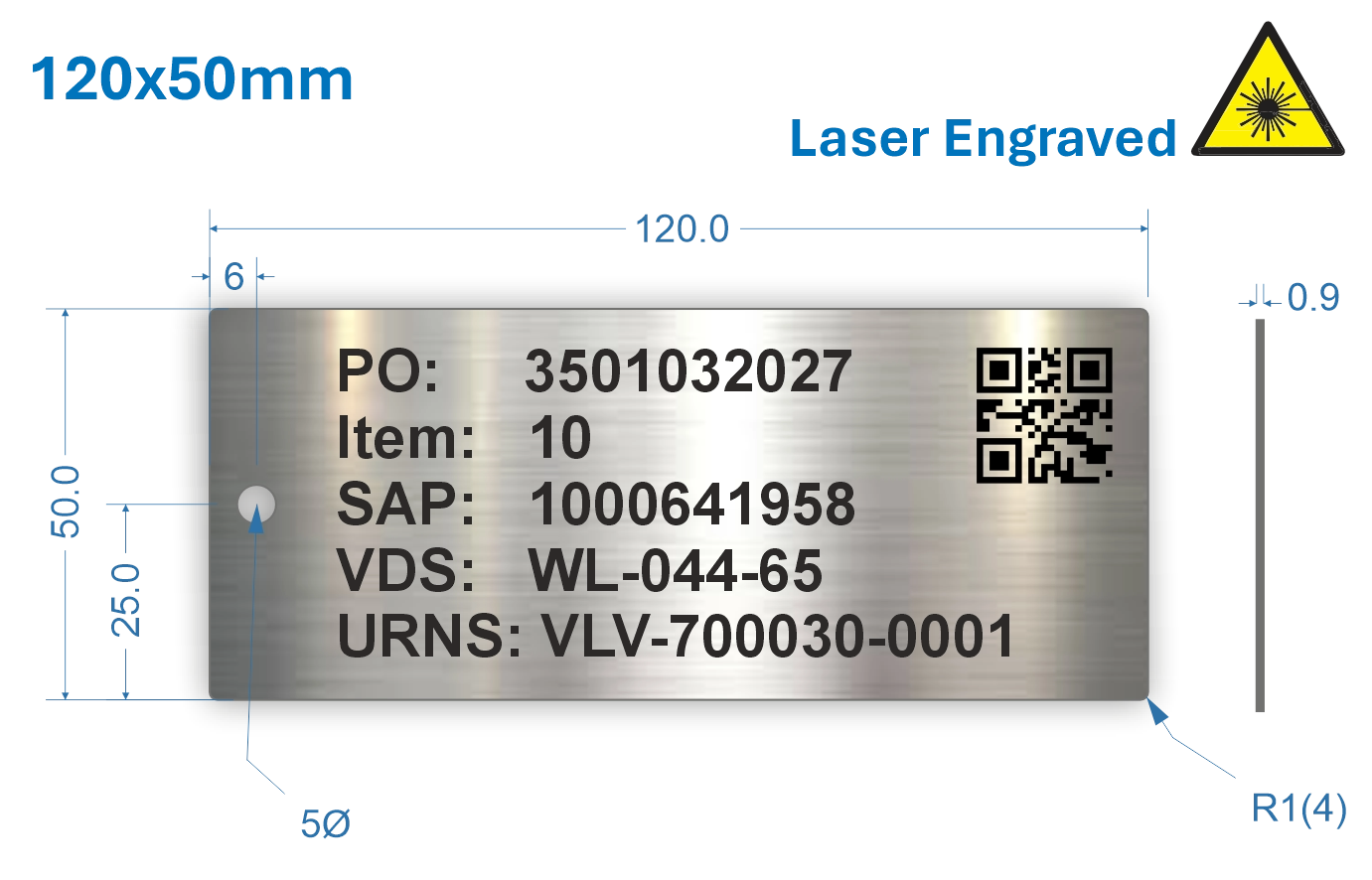 120x50mm Laser Engraved Stainless Steel Valve Tags