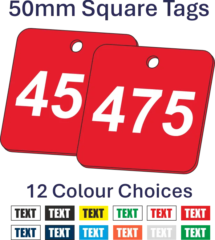 50mm Square Traffolite plastic valve tags packs of 25 number sequenced